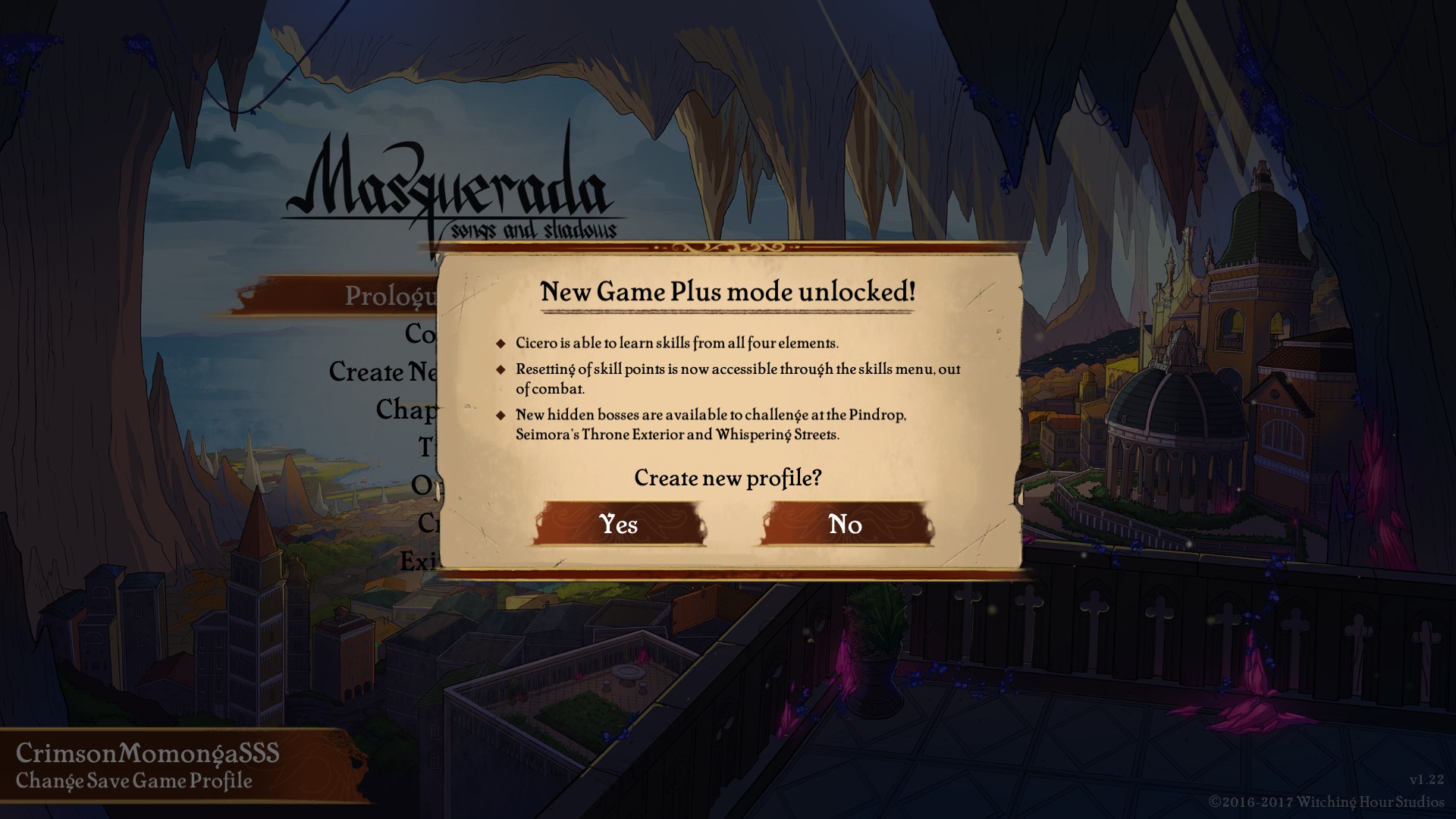 Overall, I had a good time playing Masquerada, even if it isn’t exactly what one would expect of an RPG. While I did personally enjoy the combat, I feel that the main appeal lies in the story and aesthetic. The gameplay (exploration and combat) is more of a conduit for the narrative than it’s own independent feature, and I find this justifiable given how good the writing is. Given what I’ve seen, the large repository of lore, and the potential for future installments, I would happily wait for a sequel to come. As for who else would enjoy this, well, it depends on what you like in games. If you want some sort of open-world, combat-focused, choice driven RPG then this is not the game for you. It’s certainly not a shooter, nor is it a puzzler. Rather, I feel this game would most strongly appeal to the visual novel crowd, or those who are searching for something with a strong narrative. There isn’t really much replay value to the game after NG+ aside from experiencing the story again, so the choice is really up to you.